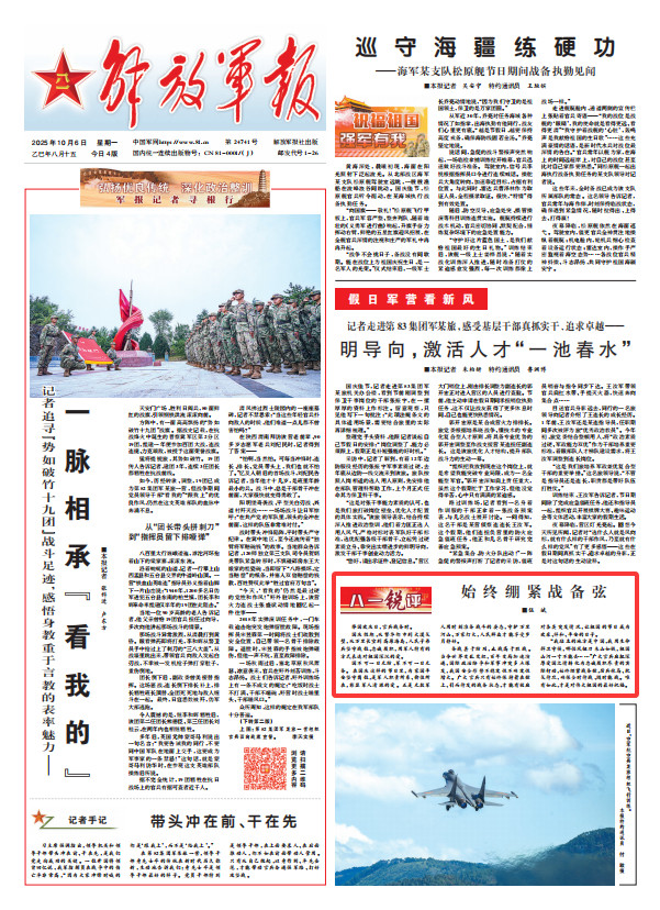 10月6日,解放军报刊发八一锐评《始终绷紧战备弦》。文章表示,当今世界变乱交织,百年变局加速演进,国际政治纷争和军事冲突多点爆发,我国安全形势不稳定性不确定性增大。广大官兵只有始终保持箭在弦上、引而待发的战备状态,才能有效应对各类突发情况,让祖国的节日成为欢乐、祥和、平安的日子。